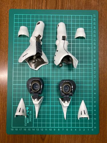LEGにスミ入れを行いました。 前脛部分のモールドにも他と同じようにタミヤのスミ入れ塗料でスミ入れを行いましたが、モールド幅がありすぎてうまくいきませんでした。 そのため、前脛部分のモールドにはガンダムマーカーのガンメタルでスミ入れしました。こ…