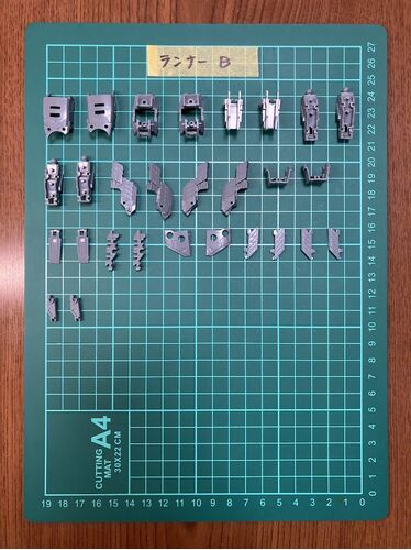ランナーBを二度切りしました。 こちらもランナーAと同じく「NT-D未発動状態」のパーツのようです。 バンダイさんのサイトに記載されていましたが、ランナーAとBのパーツはユニコーンガンダムに取り付けられるようです。 「NT-D未発動状態」は気に入ったので…